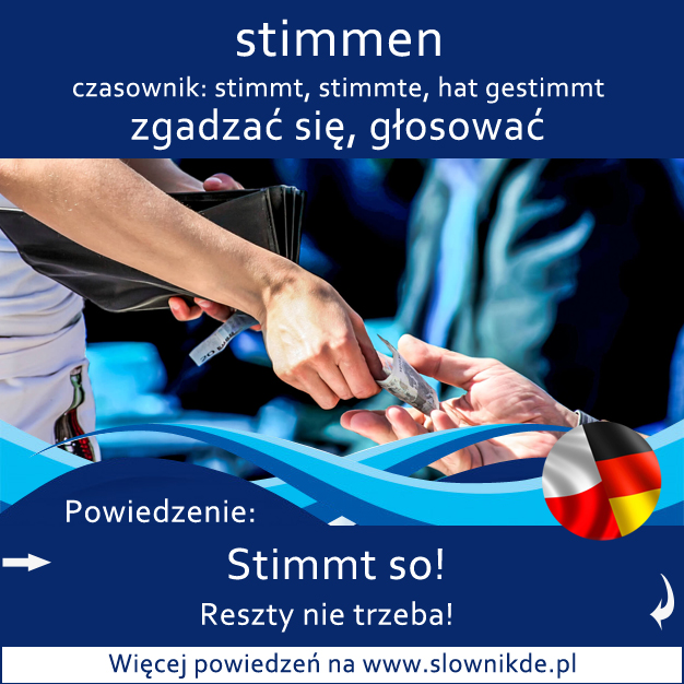 stimmen /czasownik: stimmt, stimmte, hat gestimmt/ - zgadzać się, głosować